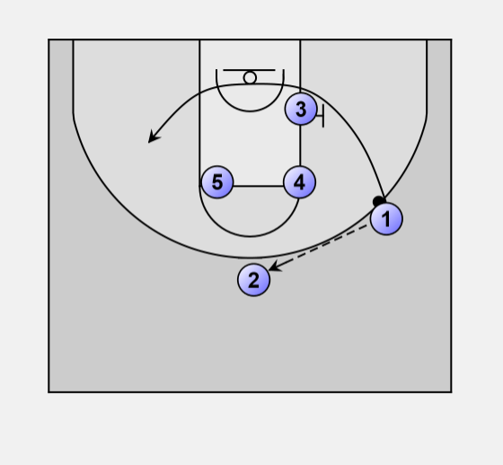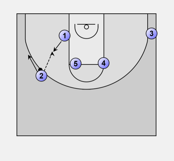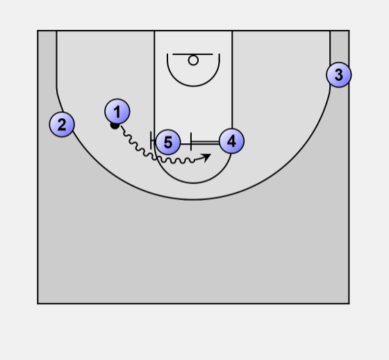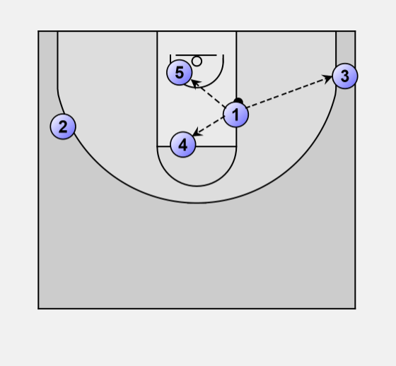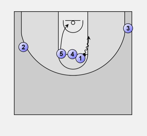 1) Pass to 5: If the defender of 5 comes over to prevent the penetration, 1 will have an open pass available to 5 under the basket.