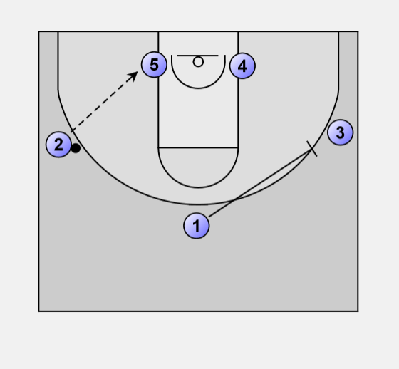 1) Pass the ball back to the point guard, who then passes to the other wing player.  Who is looking to get the pass into the post player after he has screened.