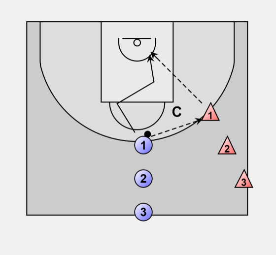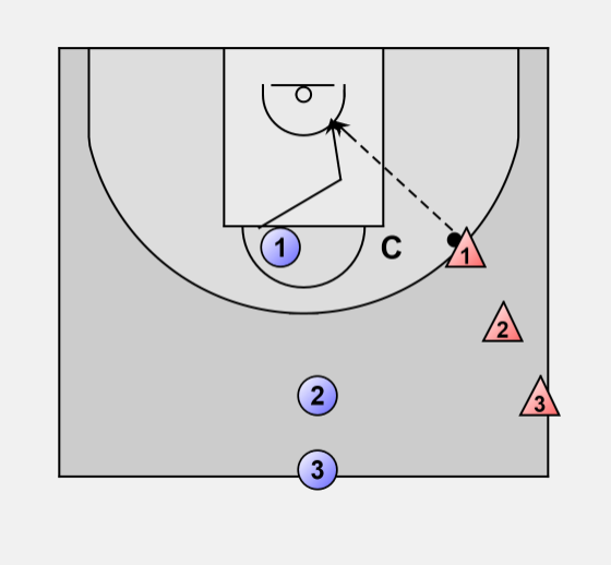 After passing to the wing 1 cuts to the free throw line before cutting back through the strong side.