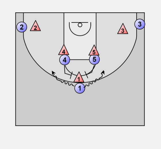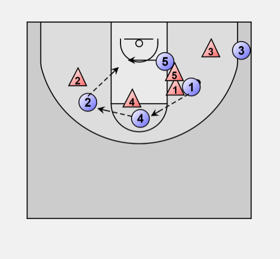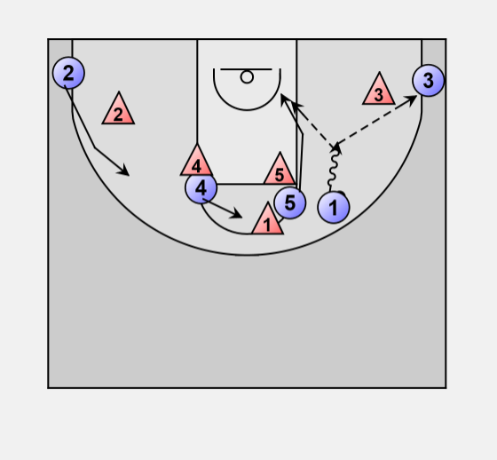 O1 drives toward the baseline. The first 3 options present themselves here.