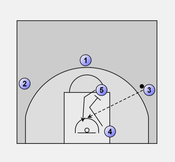 4 sets a screen so 5 can spin around the screen to the middle of the court.