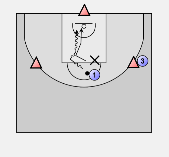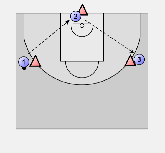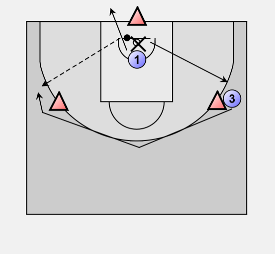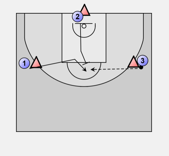 2 takes the rebound and passes to 3 who already took the place of 1.