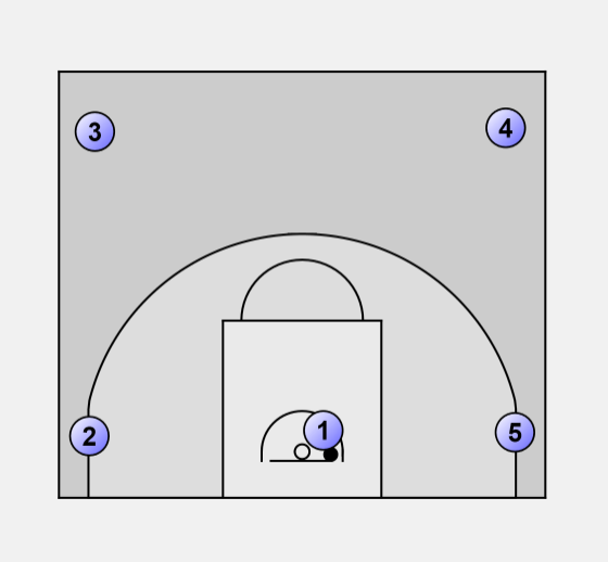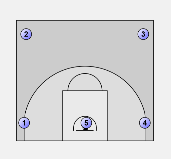 Player 5 should now be under the basket with the ball. We now have a player in each of the original spots, and we start the sequences again.