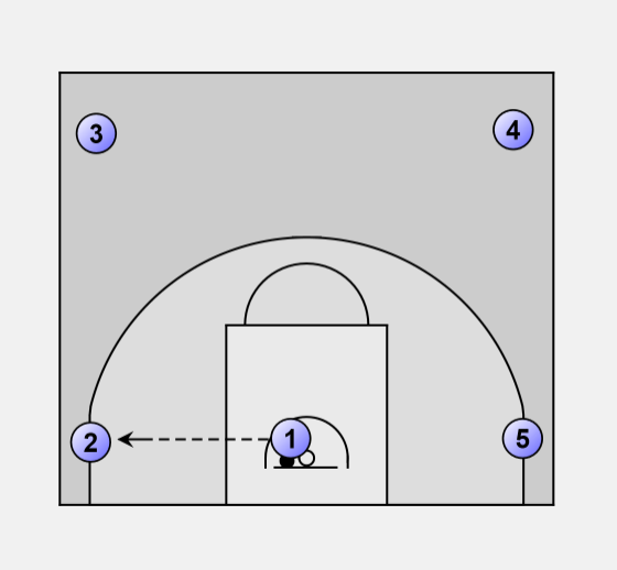Player 1 then cuts away from the basket, toward player 3.