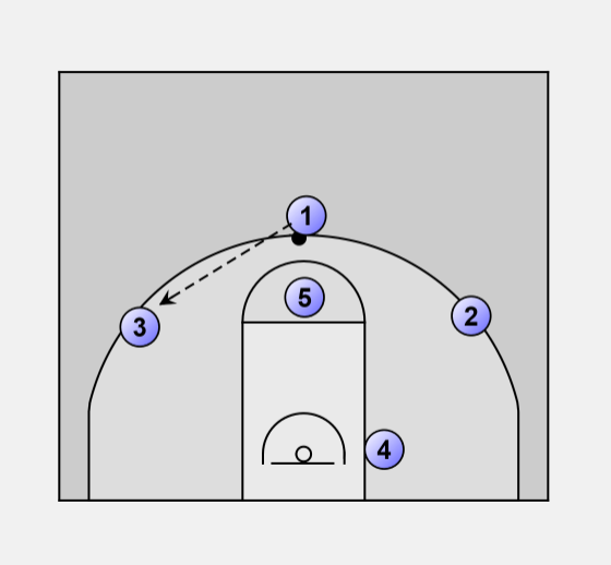 #1 passes to #3 then cuts through lane to low post opposite ball.