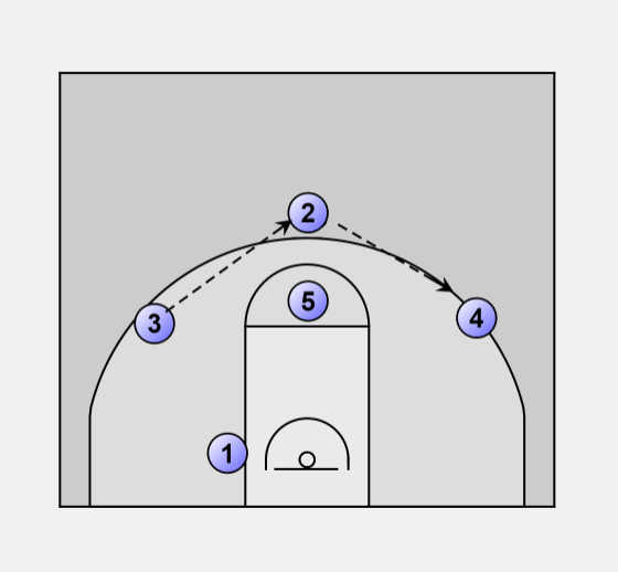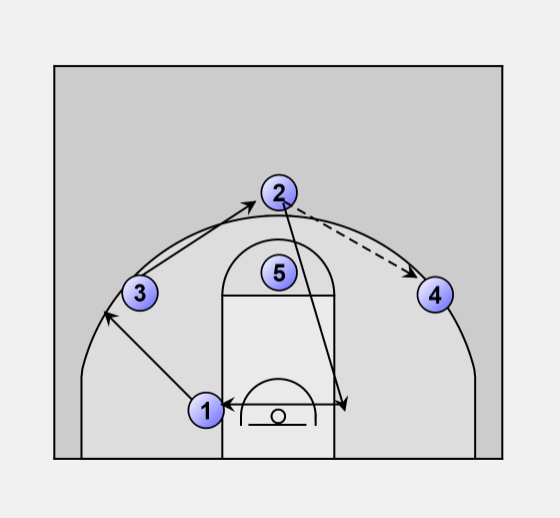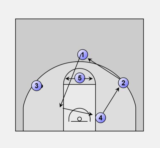 #2 passes to #4 then cuts through lane to low post opposite ball.