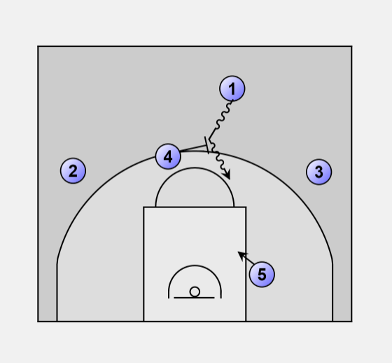 2. If 4's defender goes with 1, 4 has free throw or rolls to the basket.