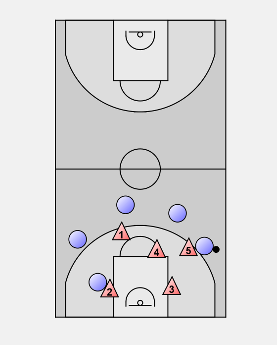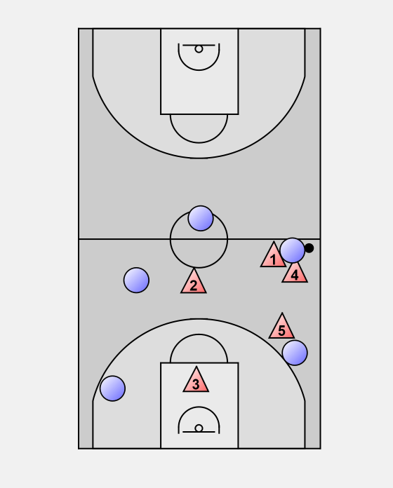5 has to contain the ball and keep it on the sideline. Ideally we can force the ball handler to the baseline.