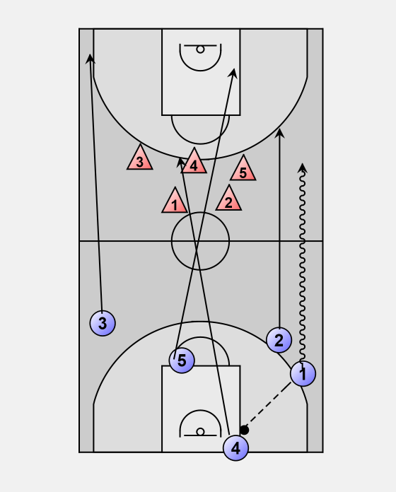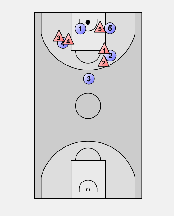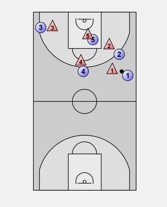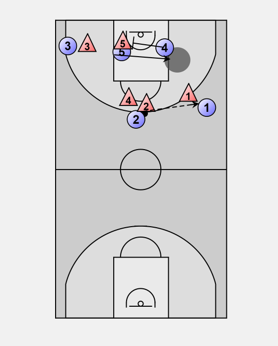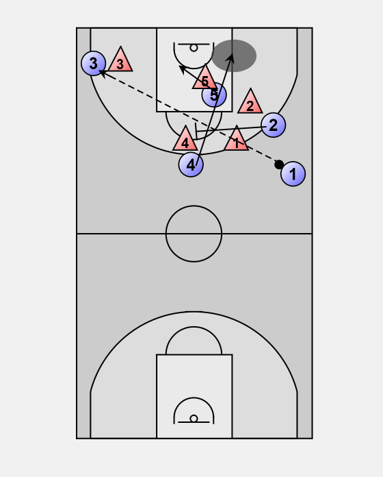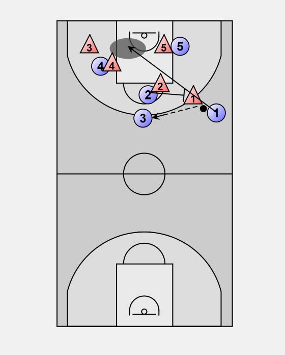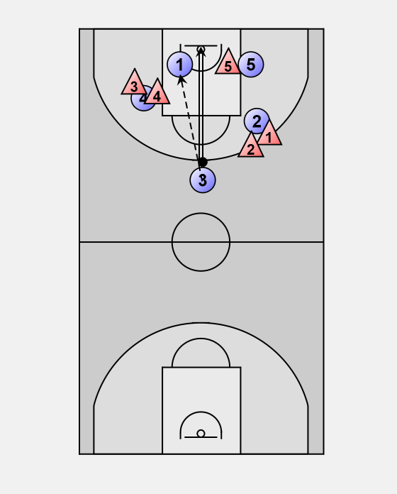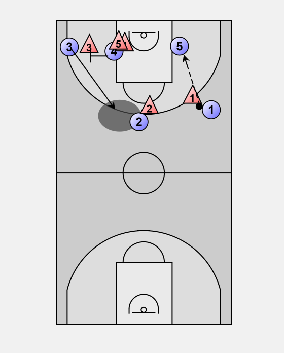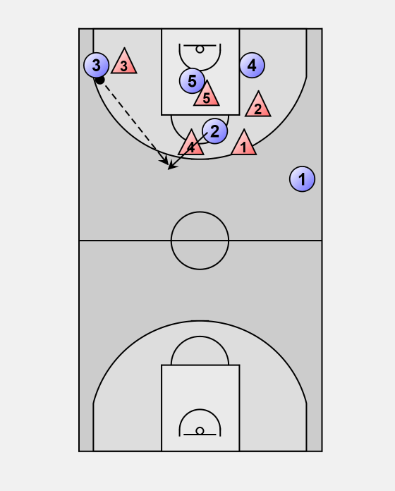 3 can either shoot the 3-point shot or pass to 1 who is wide open.