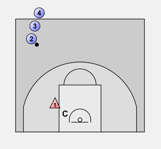 This drill teaches fronting a player, shooting, help side, and boxing out.