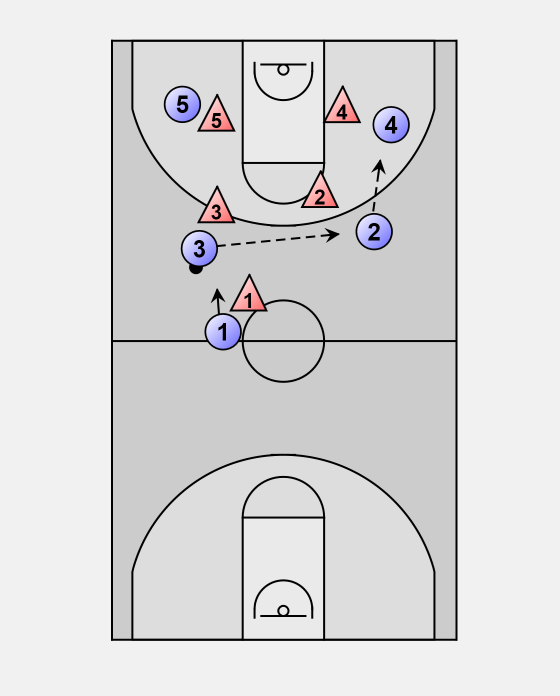 When 3 gets the pass, catch and pass to 2 quick.