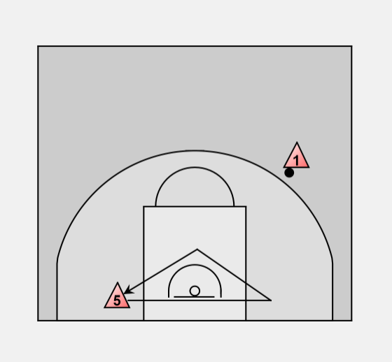 If 3 or 5 receives the ball at the low post 4 cuts from high to low and 3 or 5 replace.