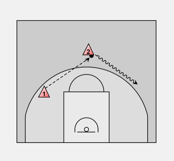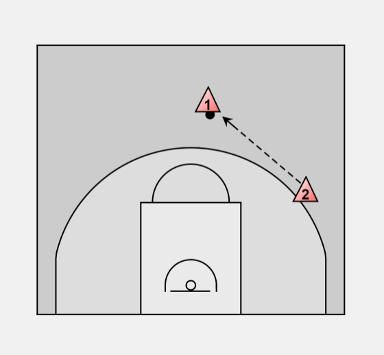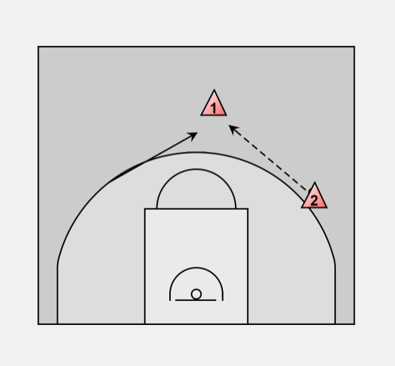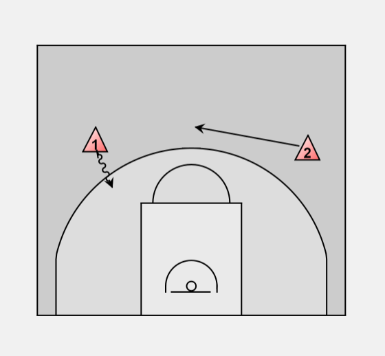 1 dribbles to make the zone react.If 1 dribbles low 2 cuts high to reverse the ball