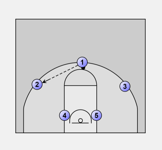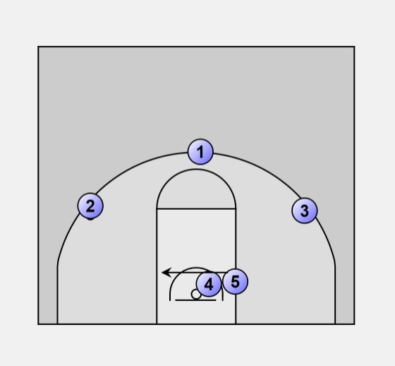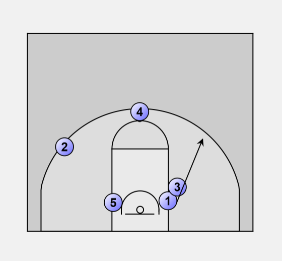 2 passes back to top of key to 4, while 3 downscreens 1.