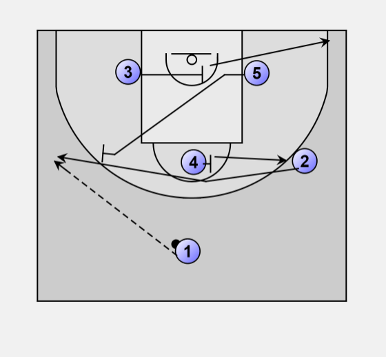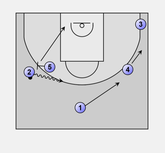 3 set a baseline screen for 5 who flashes to the top to set a screen for 2.