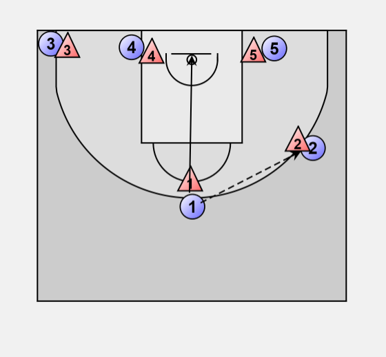 1 passes the ball to 2 and cuts to the basket.