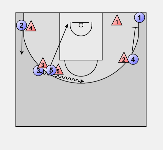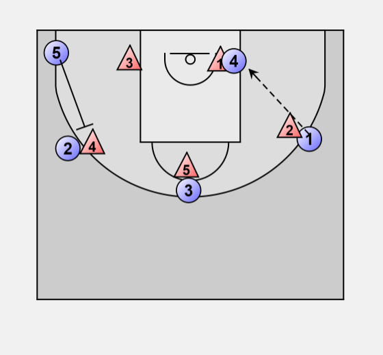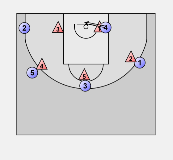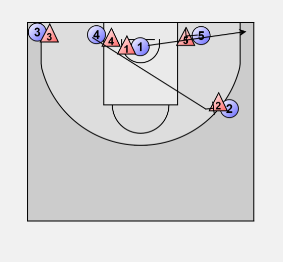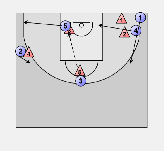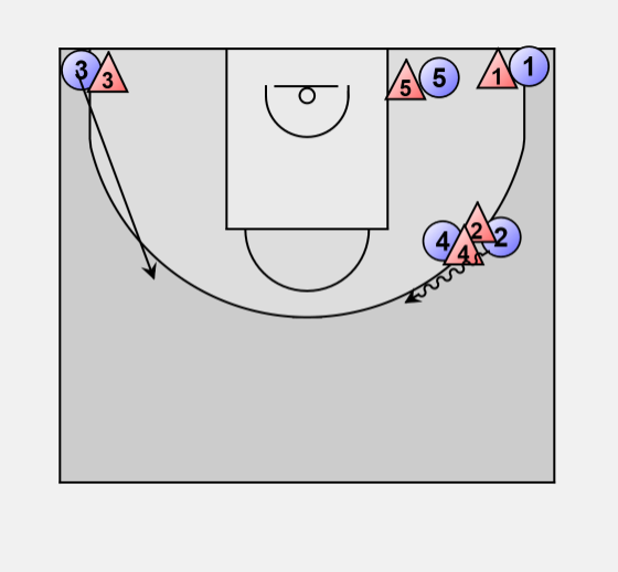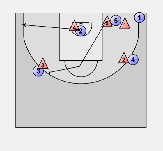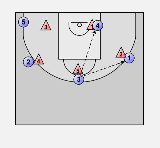 If 3 comes to trap on 4 he can pass to 2 for a 3-point shot.