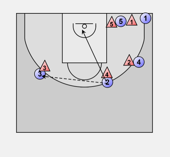 2 passes to 3 and cuts to the basket.