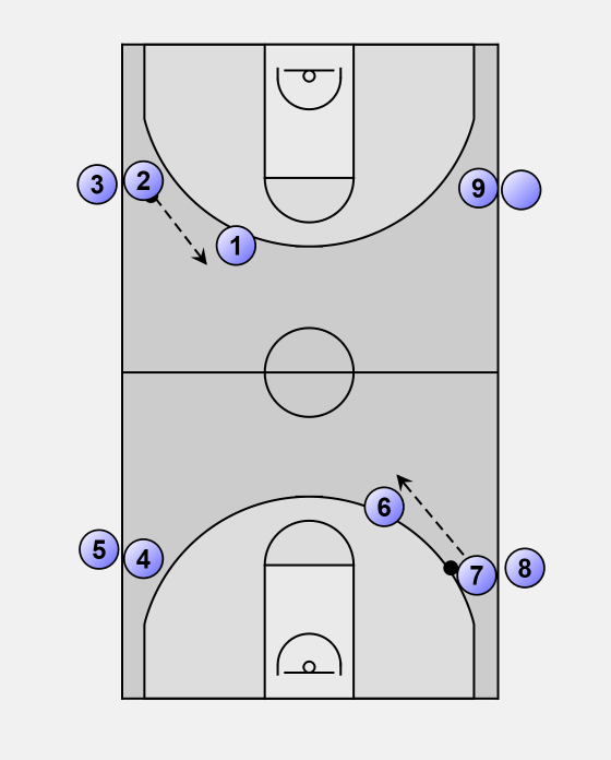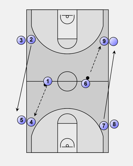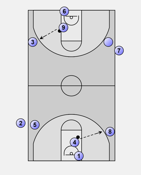 Now players 4 and 9 repeat the drill with a pass to players 8 and 3.