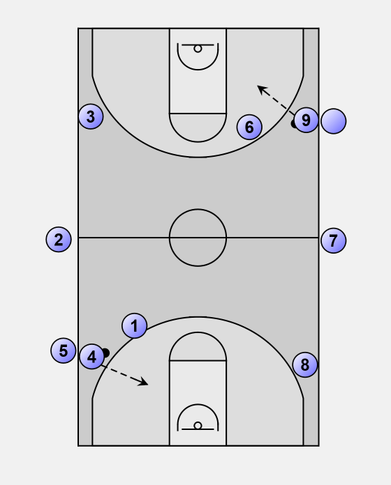 Players 4 and 9 get the rebound.