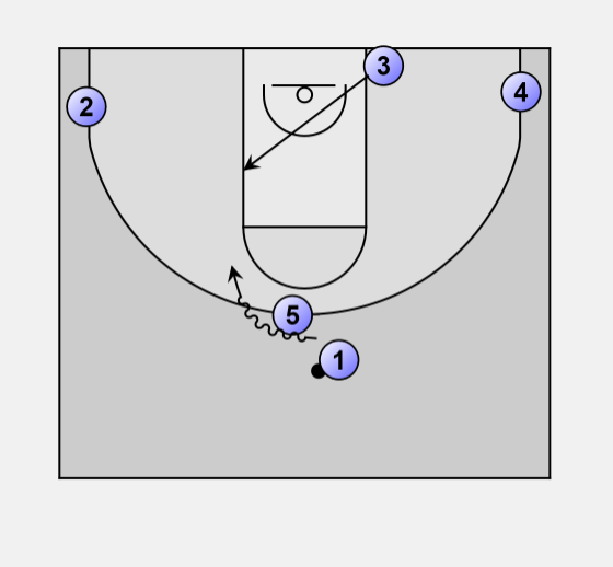 2. 1 comes off ball screen as 3 flashes to mid-post.