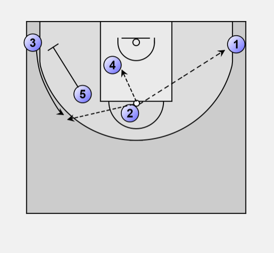 5 set a baseline stagger screen for the weak side wing, (in this case
