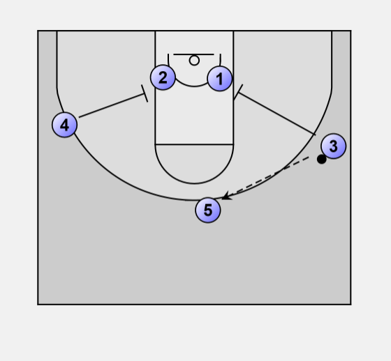 3 passes to 5 then moves with 4 to set screens on the blocks.