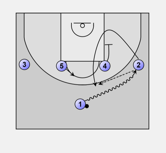 • 2 curls back off a screen from 4 to receive the ball reversal from 1.