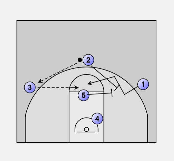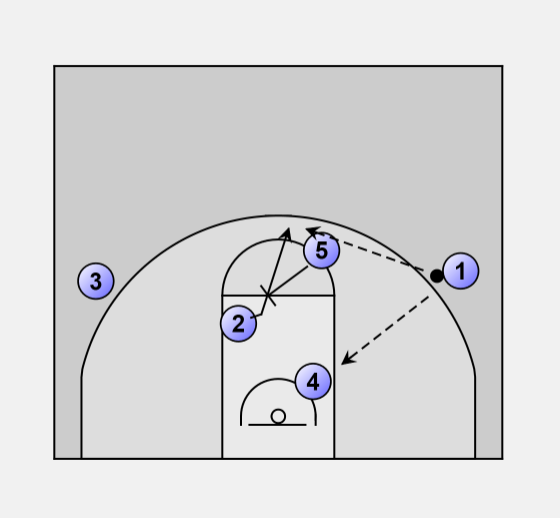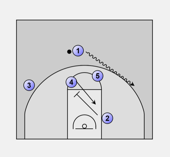 If 2 does not have a shot, he reverses the ball to 3. ( 3 backdoors any overplay).