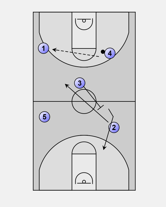 2 screens for 1, and then goes deep. 2 becomes our attacker, if he receives the ball, he wants to attack the basket.