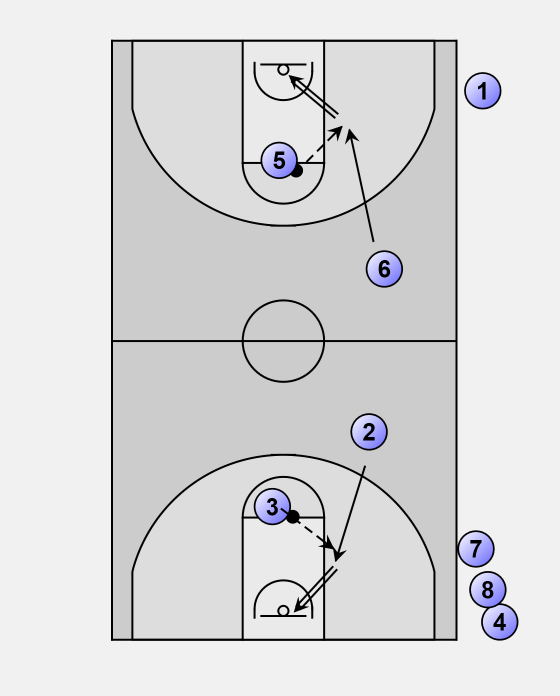 • Passer pass to shooters for layup and drill continues.