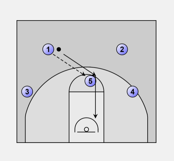 5 Hand-off to 1 for layup or baby jumper.