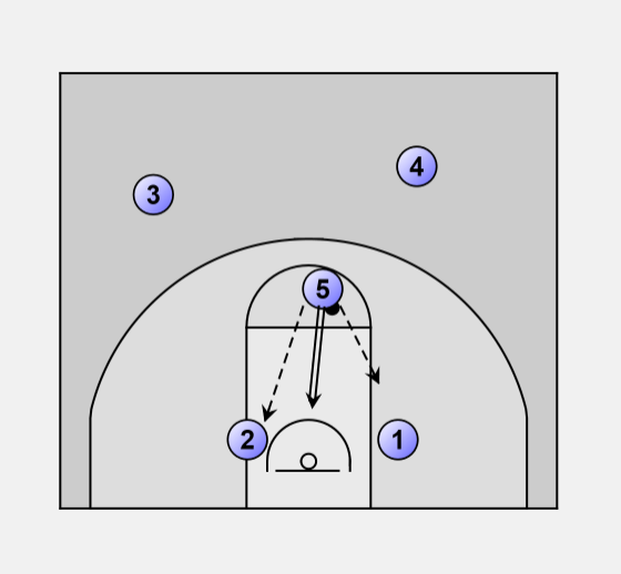 5 can bounce pass to 1 or 2 or 5 can shoot a baby jumper.