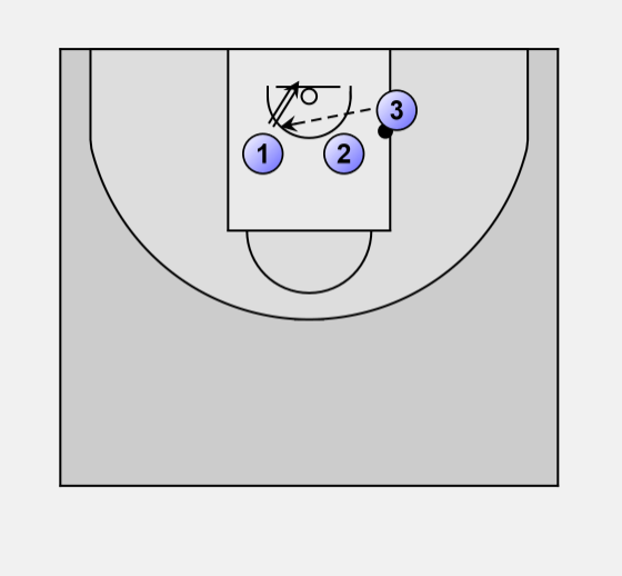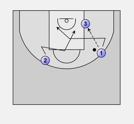 In this case 3 gives an overhead pass to 1 for the easy lay-up.