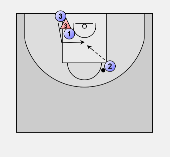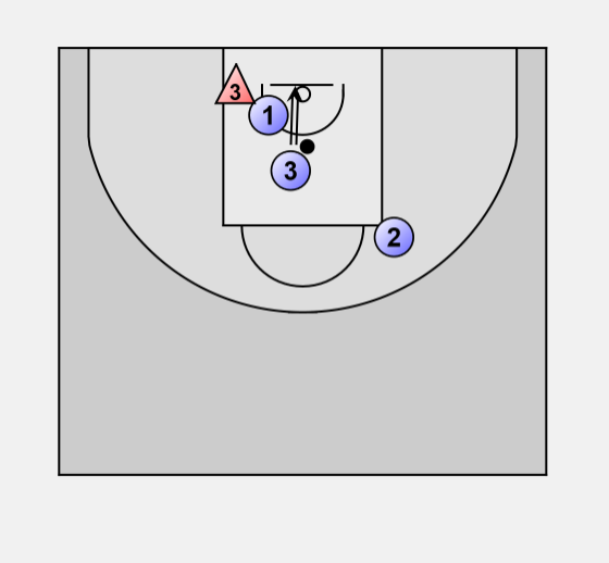Player 3 prepares for the screen moving inside setting his/hers defender up for the screen.