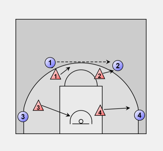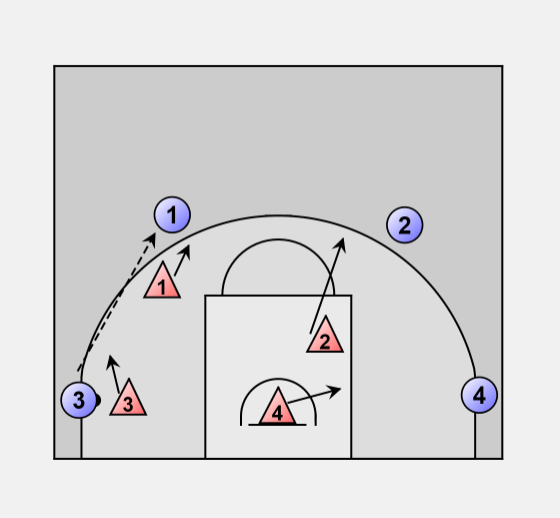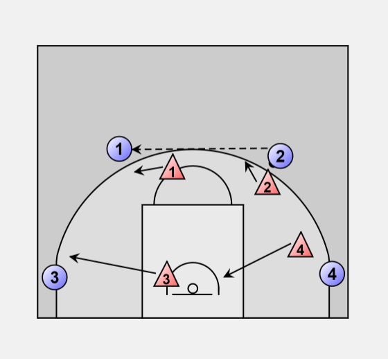 • 4 adjust position 1 - 2 step to his man.