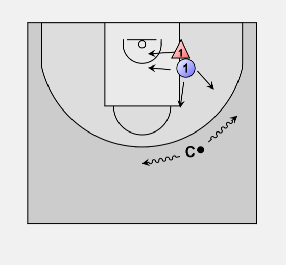• Offense makes a lead out to the wing, up high, or back door according to where the coach is positioned.