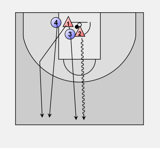 Free play 2-2 till a basket is made or the defense intercepts the ball.