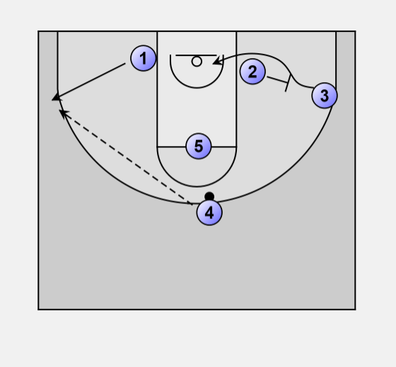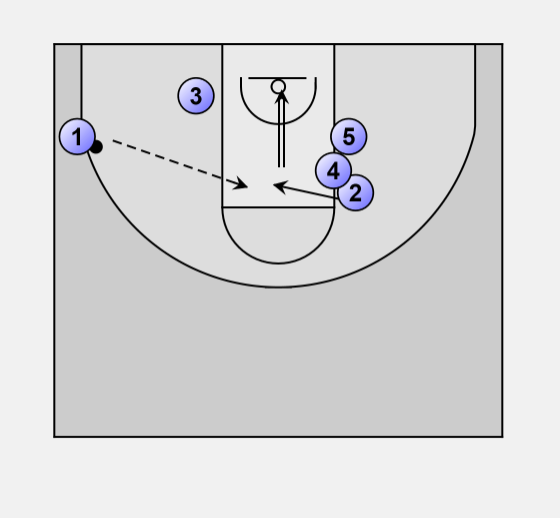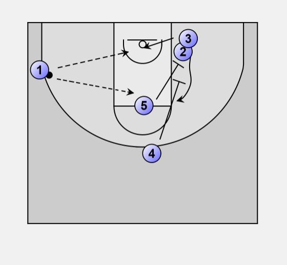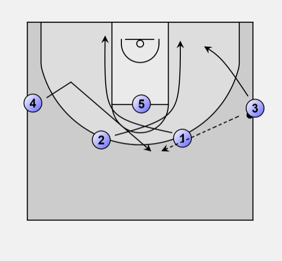 Or player #1 passes #2 coming off the staggered screens set by #5 and #4.