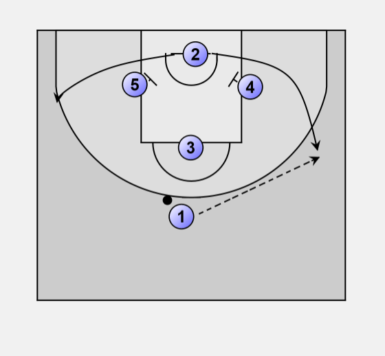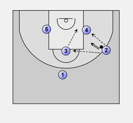 2 cuts to the other side of the court, using the screens of 4 and 5