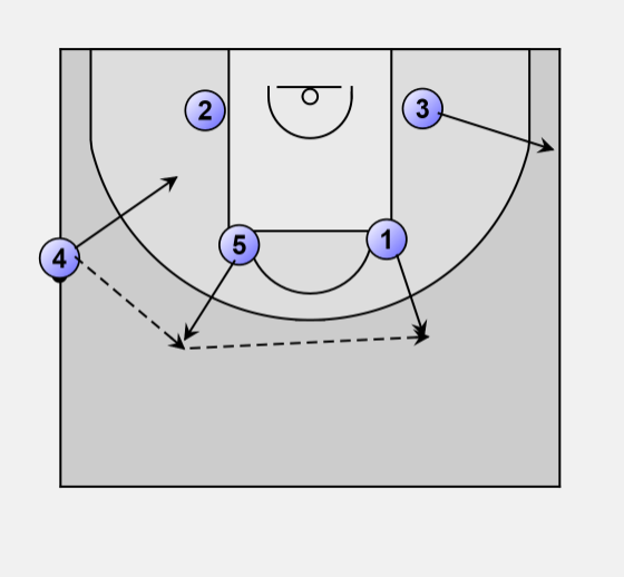 4 and 5 set a stagger for 2 who gets free, for a 3-point shot.