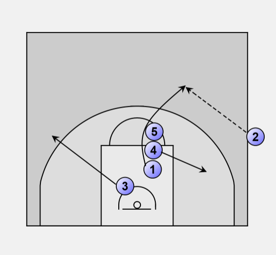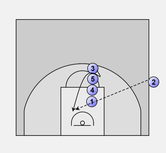 2 Dives back door off the back screen, receives from 1 and finishes.