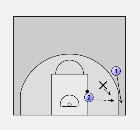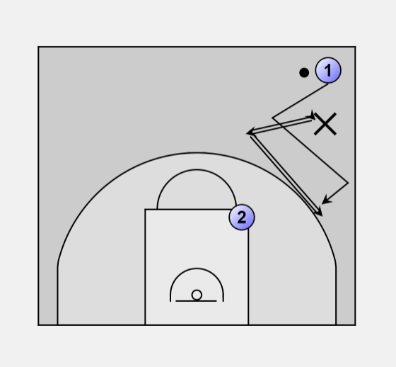 O1 is turned by d at least twice before they reach the free throw line extended. There the defence will belly up 1 as they attempt to pass to O2