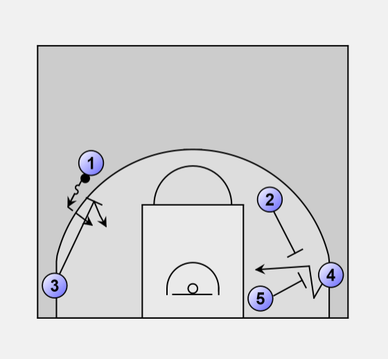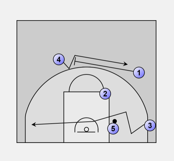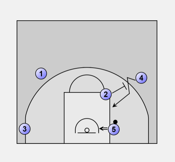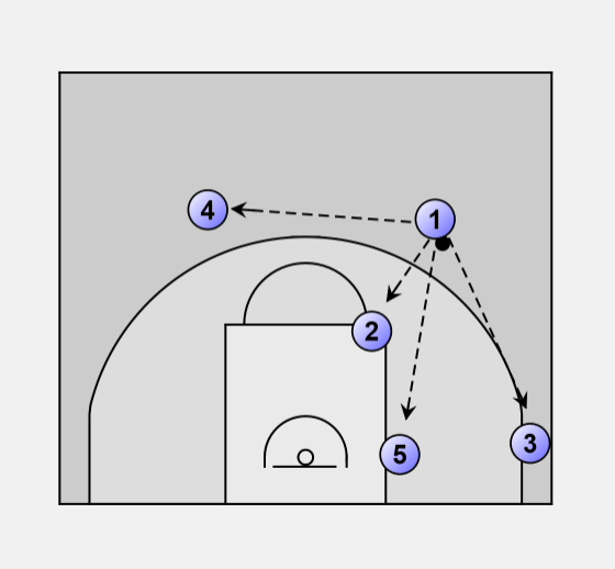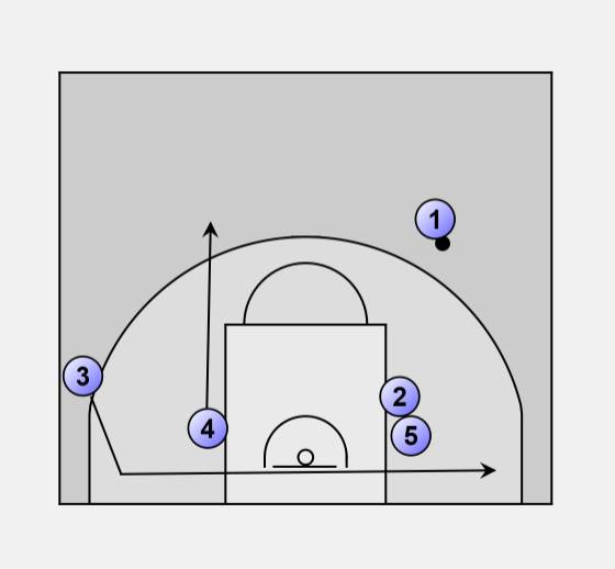 If nobody gets open in scoring position, 5 passes out to 4 and he swings the ball to the other side to 1.