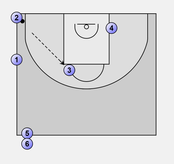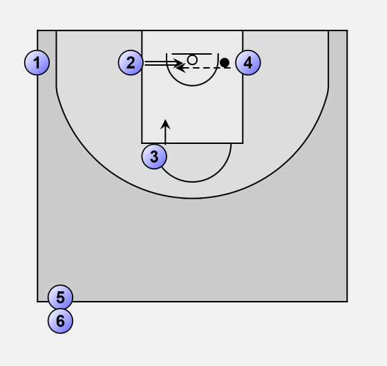 2 gets the ball from 4 and goes for a running lay-up (no stop, no dribble).