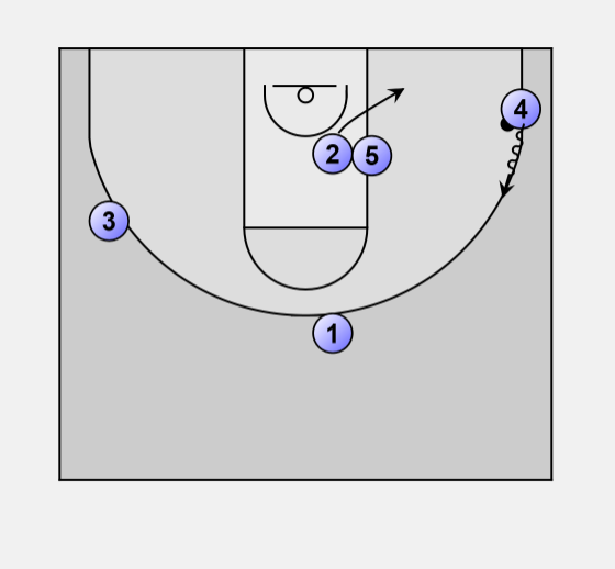 When 2 passes 5, 4 dribbles up to create a triangle.