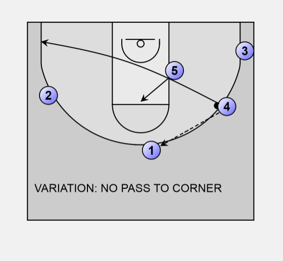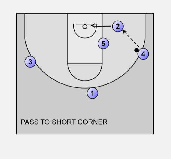 Skip the pass to the short corner, 4 passes back to 1 to swing the ball and cuts directly to the other side.