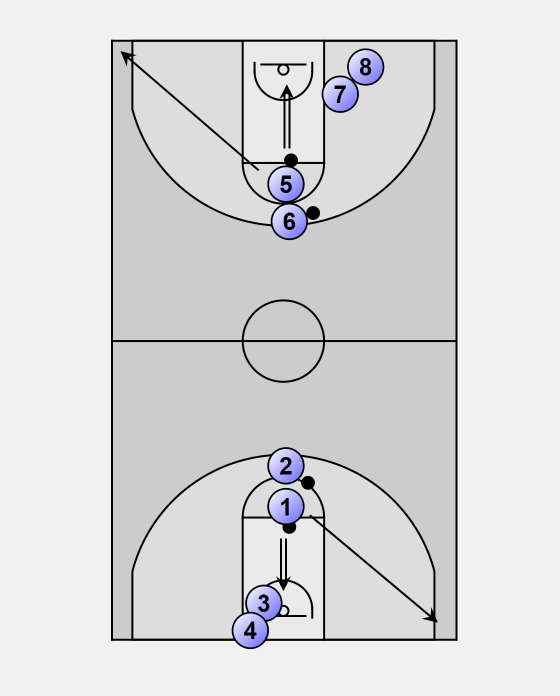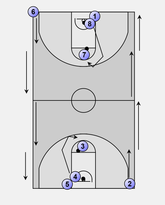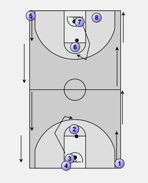 Instead of one long sprint to the other side of the court different patterns are possible.