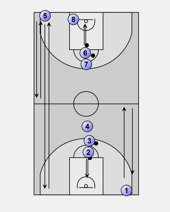 If he misses 2 he runs to the mid line to the base line to the end line and back to the base line.