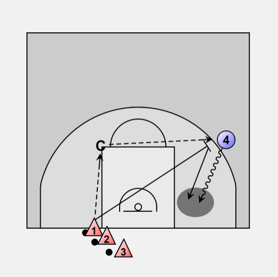(1) passes to coach who passes to (4).